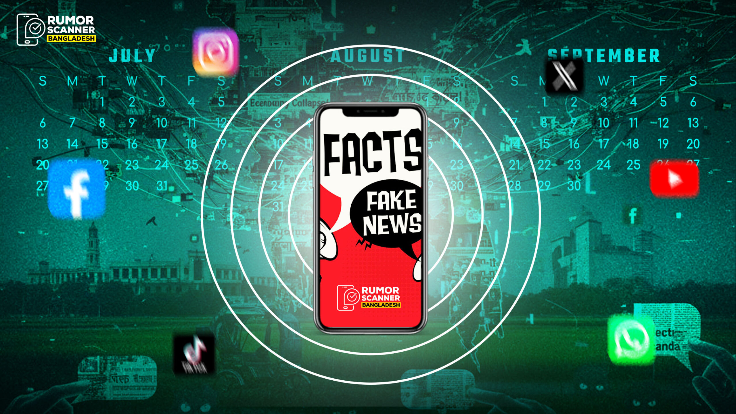 জাতীয় ক্ষেত্রে এই তিন মাসে ভুয়া তথ্যের প্রবাহে প্রভাবক হিসেবে ভূমিকা রেখেছে অন্তত দুইটি বড় ঘটনা। ২১ জুলাই ঢাকার উত্তরায় মাইলস্টোন স্কুল এন্ড কলেজে বিমান বাহিনীর বিমান বিধ্বস্তের ঘটনায় ৩৯টি এবং খাগড়াছড়িতে সহিংসতার ঘটনায় ২০টি অপতথ্য শনাক্ত হয়েছে।