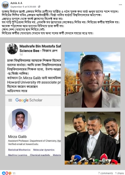 সম্প্রতি, ক্লেইম পোস্টের ক্যাপশন তো এটা না  ‘এই সেই ড. মির্জা গালিব, যিনি ঢাকা বিশ্ববিদ্যালয়ের রসায়ন বিভাগ থেকে ৯৮% নম্বর নিয়ে গ্রাজুয়েশন শেষ করেছিলেন। তবুও ঢাকা বিশ্ববিদ্যালয় তাঁকে শিক্ষক হিসেবে নিয়োগ দেয়নি। তখন তিনি আক্ষেপ করে বলেছিলেন— “ঢাকা বিশ্ববিদ্যালয় আমাকে শিক্ষক হিসেবে নেয়নি, এটা তাদের ব্যর্থতা। আমি ঢাবির চাইতেও বড় বিশ্ববিদ্যালয়ের শিক্ষক হবো।” আজ ড. মির্জা গালিব যুক্তরাষ্ট্রের হার্ভার্ড বিশ্ববিদ্যালয়ের রসায়ন বিভাগে সহকারী অধ্যাপক হিসেবে নিয়োগপ্রাপ্ত হয়ে বাংলাদেশের মুখ উজ্জ্বল করেছেন।’ শীর্ষক একটি তথ্য সামাজিক যোগাযোগমাধ্যমে ছড়িয়ে পড়েছে।