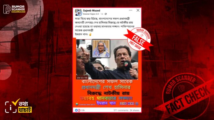 শেখ হাসিনার ফাঁসির রায়কে কেন্দ্র করে ইমরান খানের নামে ভুয়া মন্তব্য প্রচার
