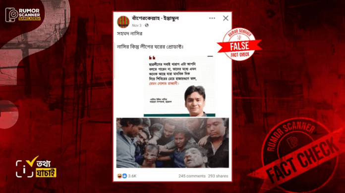 ছাত্রলীগ ও শিবিরকে জড়িয়ে ছাত্রদলের সাধারণ সম্পাদক নাসির উদ্দিন নাসিরের নামে ভুয়া মন্তব্য প্রচার