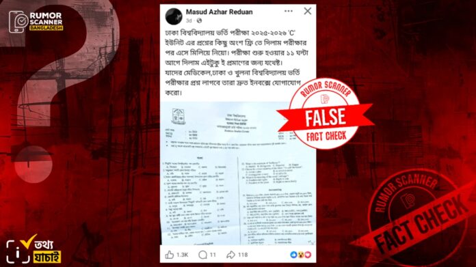 ঢাবির ‘সি’ ইউনিটের ভর্তি পরীক্ষার প্রশ্নপত্র ফাঁস দাবিতে ডিজিটাল জালিয়াতি ফেসবুকে
