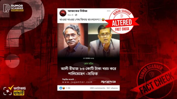 আলী রীয়াজ ৮৩ কোটি টাকা খরচ করে পালিয়েছেন বলেননি শফিকুল আলম, সম্পাদিত ফটোকার্ড প্রচার