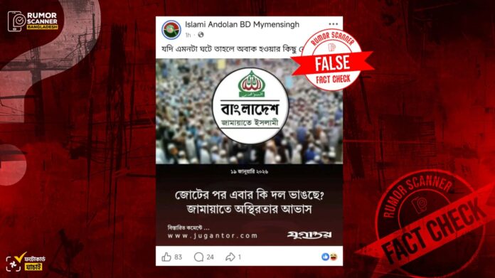 জামায়াতে অস্থিরতা দাবিতে যুগান্তরের নামে ভুয়া ফটোকার্ড প্রচার