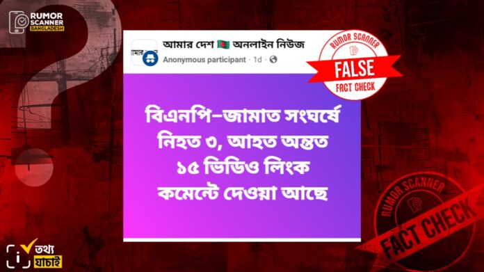 সম্প্রতি বিএনপি-জামায়াত সংঘর্ষে ৩ জন নিহত হয়েছেন শীর্ষক দাবিটি ভিত্তিহীন