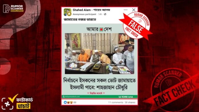 নির্বাচনে ইসকনের ভোট জামায়াত পাবে শীর্ষক মন্তব্য শাহজাহান চৌধুরী করেননি, আমার দেশের ভুয়া ফটোকার্ড প্রচার