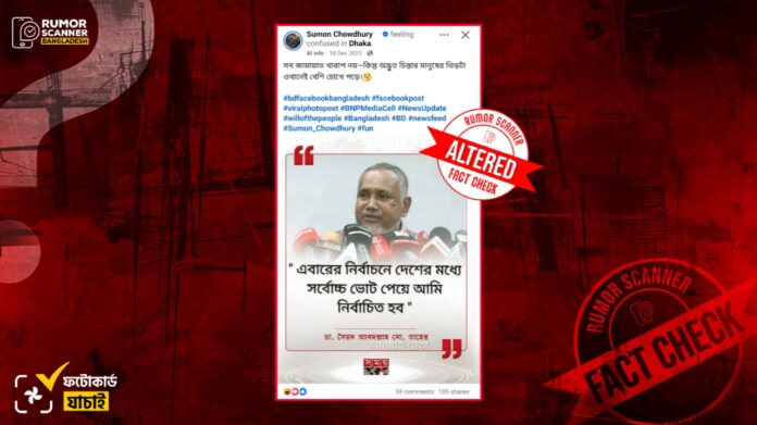 নির্বাচন প্রসঙ্গে সেনাপ্রধানের মন্তব্য দাবিতে এখন টিভির সম্পাদিত ফটোকার্ড প্রচার