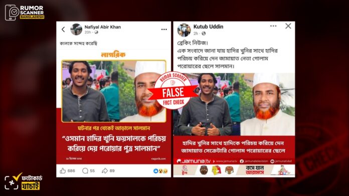 গোলাম পরওয়ারকে জড়িয়ে ওসমান হাদীকে উদ্ধৃত করে আমার দেশের নামে ভুয়া ফটোকার্ড প্রচার