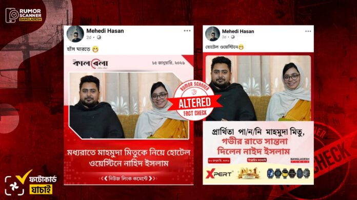 গণমাধ্যমের ডিজাইন নকল করে মাহমুদা মিতু ও নাহিদ ইসলামকে নিয়ে একাধিক সম্পাদিত ফটোকার্ড প্রচার