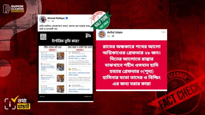 হাদি হত্যা মামলায় কেউ গ্রেফতার হয়নি দাবিতে অর্ধসত্য তথ্য প্রচার