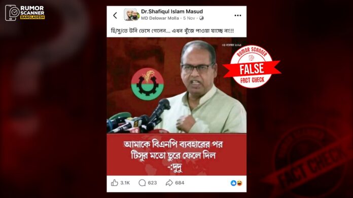 ‘আমাকে বিএনপি ব্যবহারের পর টিসুর মতো ছুরে ফেলে দিল’ শীর্ষক মন্তব্য করেননি শামসুজ্জামান দুদু